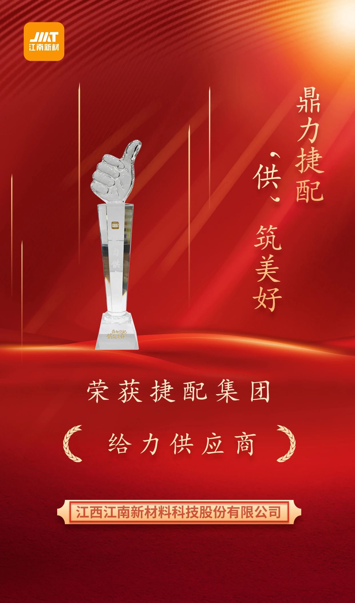 會上,為表彰并鼓勵優(yōu)秀的供應鏈合作伙伴,本次活動面向供應鏈伙伴設立多個獎項,包括“筑力獎、給力獎、鼎力獎”等。江南新材憑借卓越的品質(zhì)與合作表現(xiàn)榮獲了捷配集團授予的“給力供應商獎”。